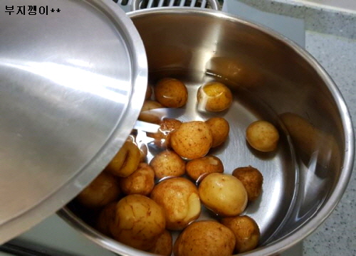 감자 속까지 맛 스미도록 젓가락으로 한 두번씩 뿅뿅