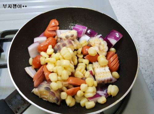 옥수수 넣고 잠깐 볶다가