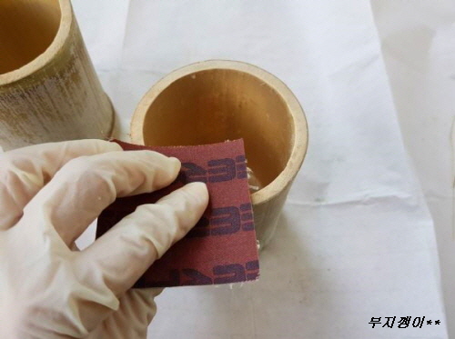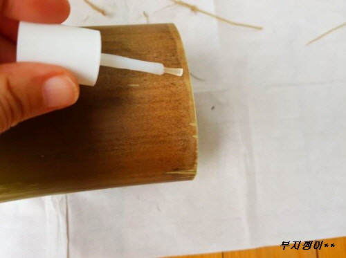 대나무를 돌려 가며 몇 군데 접착제를 바르고(손에 안 묻게 조심)