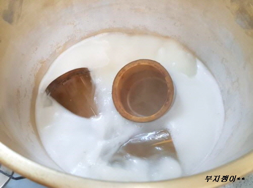 세제 푼 물에 20여분 폭폭 삶아 때를 뺐어요.