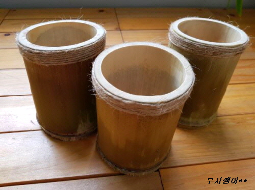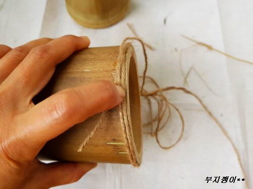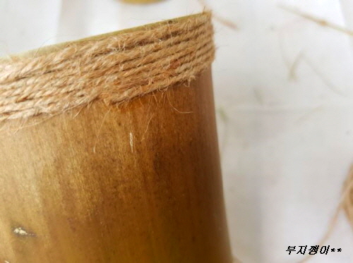 준비물; 대나무, 마 끈, 접착제, 세탁용 세제
