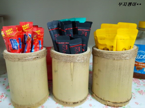 음식용으로 사용 하기에는 찜찜해 봉지 커피나 차를 담아 두는 수납통으로 용도 변경했습니다.