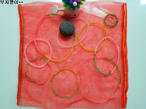 양파망은 깨끗이 세탁해 말렸고, 자수 세트는 사용하고 남은 거예요.
