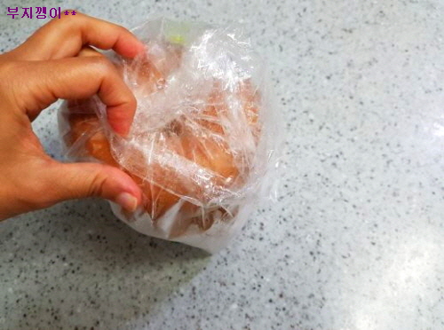 봉지 위로 쫙 올려서