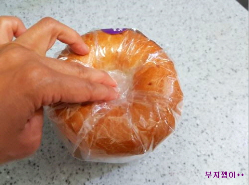 베이글 빵 봉지 밀봉하기입니다.