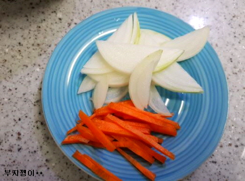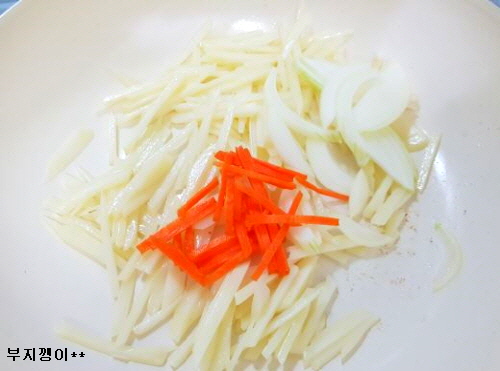 준비물; 감자, 당근, 양파, 김가루, 소금, 식용유