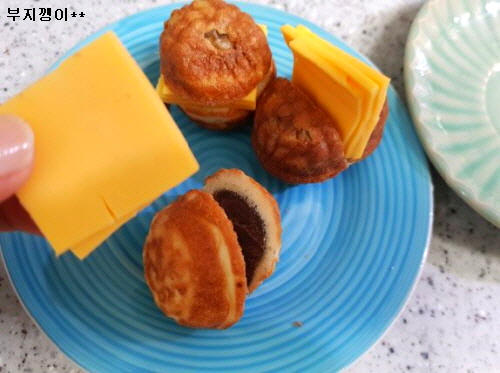 준비물; 호두과자, 슬라이스 치즈