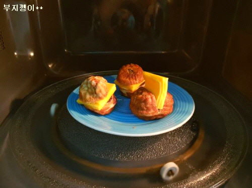 전자레인지에 잠깐 돌리며 앞에 쭈그리고 앉아 상태 지켜 보았... 앗!!!