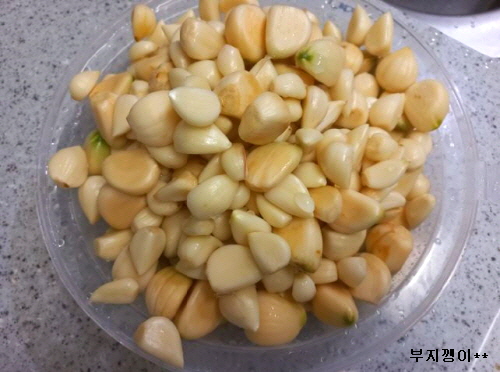 껍질 벗겨 여러번 깨끗이 헹궜어요.