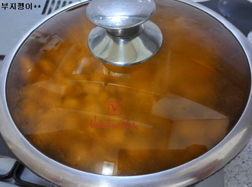 찜기에 얹어 물 끓기 시작 후 10여분 쪘어요.