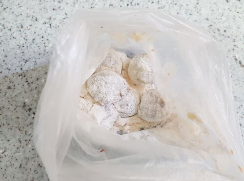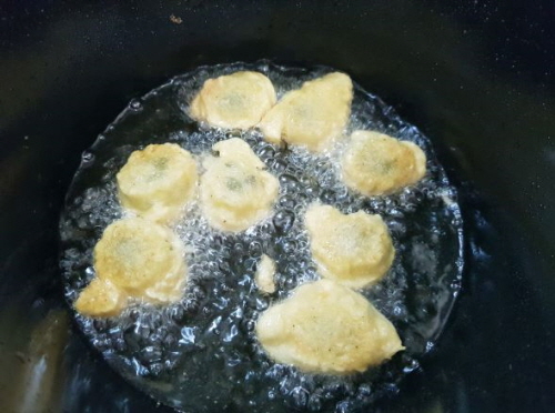 튀김가루 바른 알맹이를 반죽에 텀벙 넣었다가