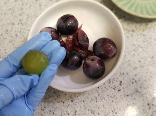 깨끗이 씻은 거봉의 껍질 벗기고