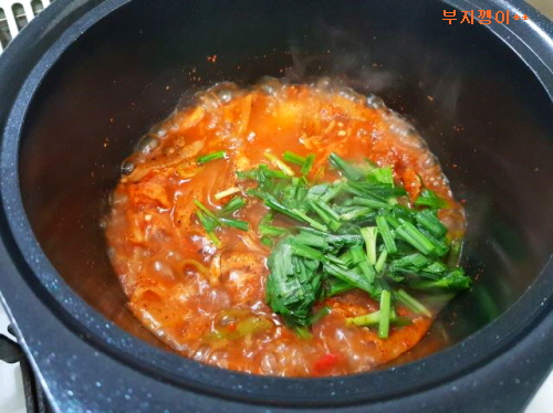 부추 넣고 잠깐만 더 끓이다가