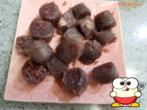 먹고 남아 냉장고에 두었던 순대, 마지막에 전자레인지에 돌려 사용했어요.
