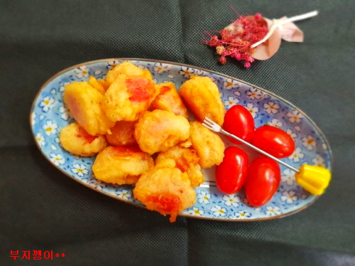 에잇~ 큰 일반 토마토를 확 튀겨 먹을까?