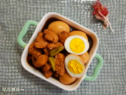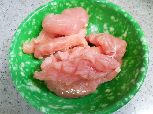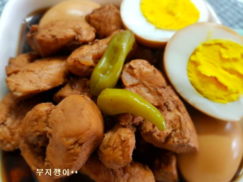 준비물; 닭안심, 달걀, 고추(청양), 생강, 통후추, 간장, 설탕