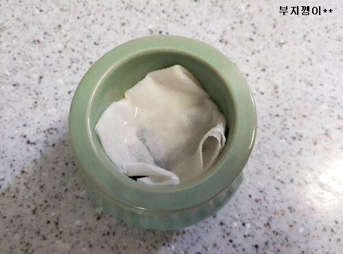 빛 안 들어 가게 검은 봉지 덮어 싱크대 한편에 두었어요.