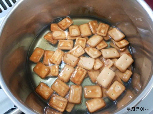 건빵을 맛있게 먹으려고 튀겼어요.