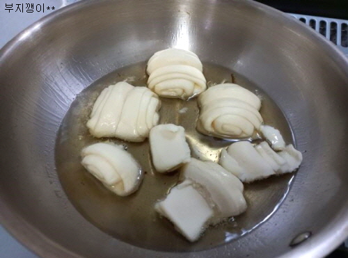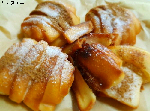 준비물; 꽃 빵, 계핏가루, 설탕, 식용유