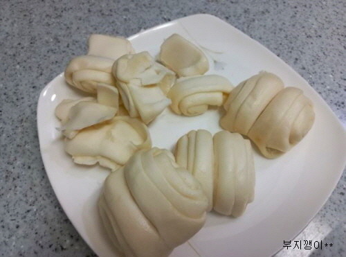 쪄서 먹고 남은 꽃 빵으로 만들었어요.