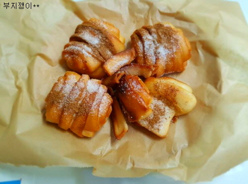 튀긴 후 바로 계핏가루와 설탕을 묻혀야 하는데 잠깐 딴짓하다 했더니 조금은 겉도는 느낌..
