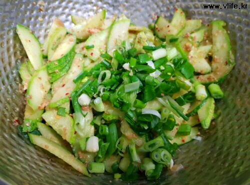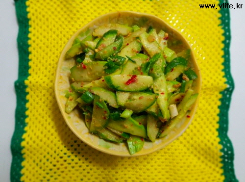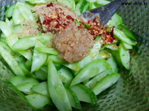 준비물; 오이, 된장, 배청(설탕), 파, 마늘, 깨소금, 고춧가루, 참기름