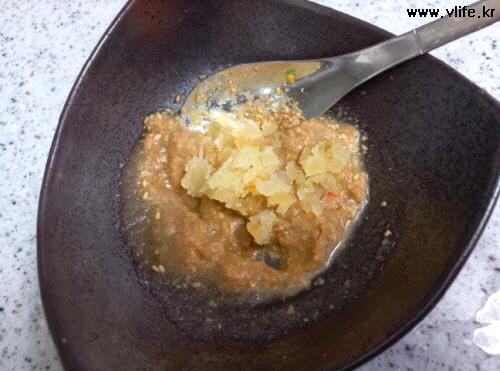 된장 조금+배청(설탕 ㅇㅋ)+깨소금+마늘 섞어