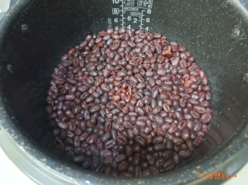 전기 압력 밥솥의 삼계탕 기능(밥 솥 산지 10여 년은 넘은 것 같은데 처음 써 보는 기능)으로 팥을 삶았어요.