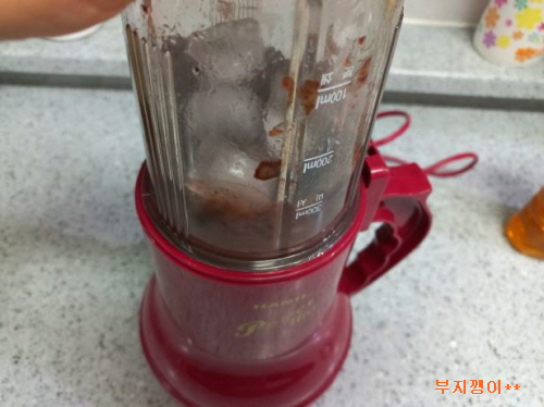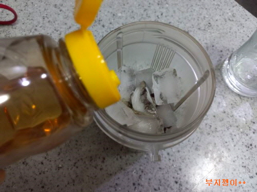 주재료와 얼음+물+약간의 시럽 섞어 윙 갈아 주면 끝!