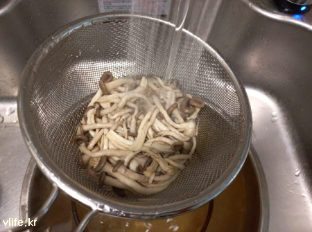 두꺼운건 반으로 갈라가며 버섯을 두 세 가닥씩 떼어내요.
