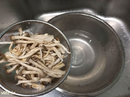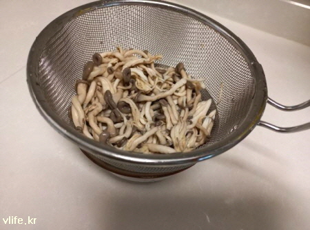 버섯 물이 덜 빠졌으면 두 손으로 살짝 짜요.