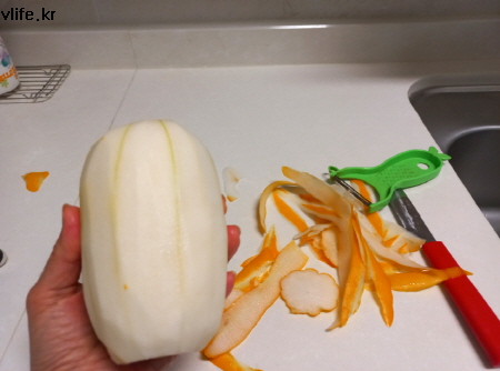 간단하고 쉬워서 저는 작은 참외도 이렇게 깎아요. ^^
