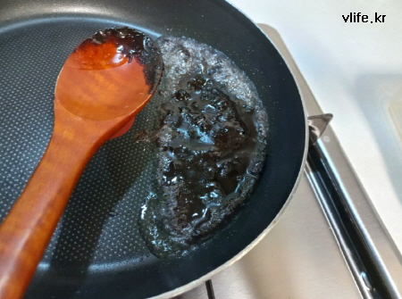 잠깐 그대로 두면 기름이 나오는 데 따라 버렸어요.