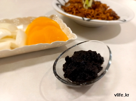 짜파게티 끓여 단무지랑 양파 찍어 가며 맛있게 후루루 짭짭