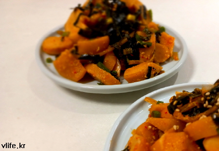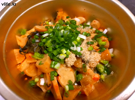 물기 빼서 먹기 좋은 크기로 자르고