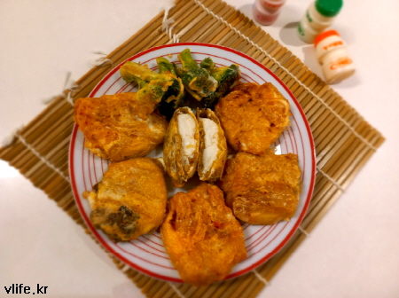 부침가루나 밀가루 앞 뒤로 발라