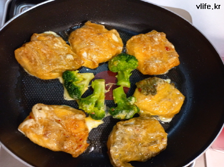 달걀 물이 남아 데친 브로콜리도 구웠는데, 의외로 맛있네요.