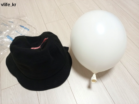 모자의 형태를 유지하기 위해 풍선을 넣었어요.