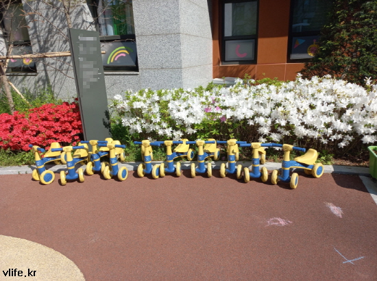 바로 어린이집 앞에 주차되어 있는 자전거들
