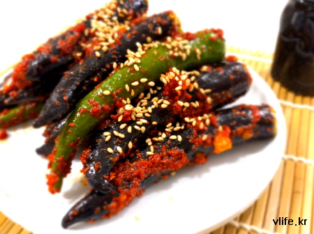 보라색 통 가지고추 무침, 맵찔이 안성맞춤