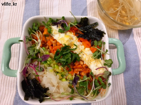 새싹 채소와 깻잎은 있어서 얹은 거예요, 없어도 맛있어요.