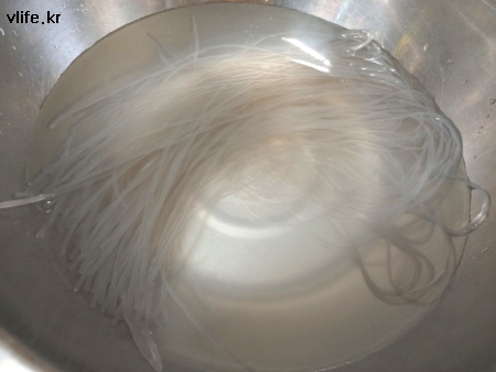 조리 시간 줄이기 위해 미지근한 물에 당면 담가 두었어요.