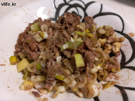 소 불고기감을 간장 양념 안 하고 소금과 후추에 파 많이 넣고 구워 먹었어요.