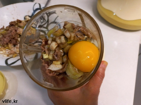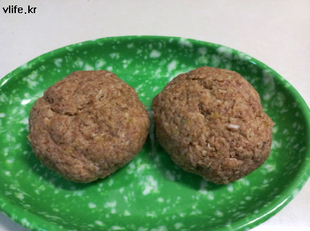 믹서기에 묻은 고기 아까워 물 조금 넣고 헹궈 섞었더니 반죽이 질은 감이 있어 농도 맞추느라고 빵가루가 좀 많이 필요했어요.