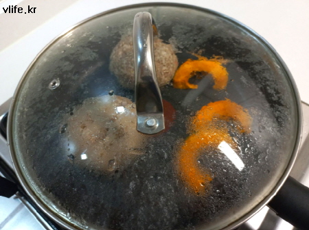 속까지 잘 익고 촉촉하라고 뚜껑 덮었어요.
