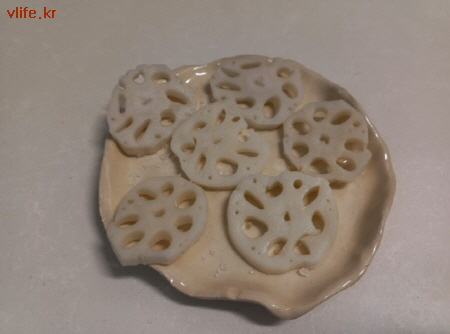 드라마에서는 우엉을 튀겼는데 연근이 있어서 주방티슈로 물기 제거하고 소금과 후추 뿌려 두었어요.