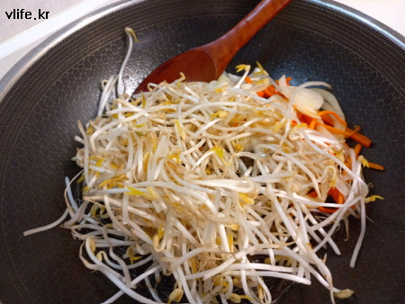 아삭아삭 푸짐한 숙주가 부족한 부재료 생각 안 나게 맛있어요.