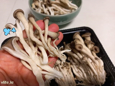 두꺼운건 반으로 갈라가며 버섯을 두 세 가닥씩 떼어내요.