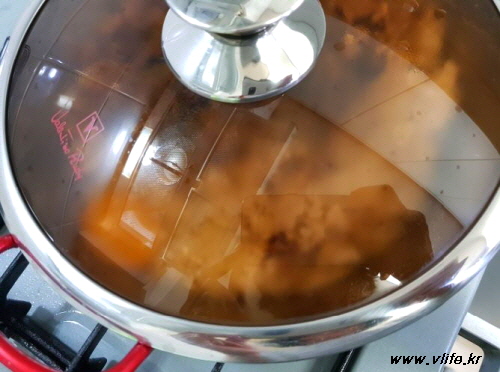 가스불 위에 뚜껑 덮어 올려 전체적으로 따끈하게 데워요.