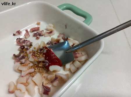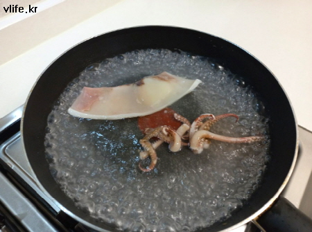 딱 1인분만 만들거라 오징어도 조금만 데쳤어요.